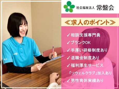 社会福祉法人常盤会は鹿児島市内と関東地区(東京・埼玉)に総合的な福祉サービスを展開している法人です。法人本部は鹿児島中央駅徒歩15分の場所にあり、発達の気になるお子さんの支援を行うサニーキッズが併設しています。